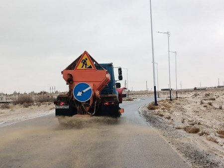 Қауіпсіз қозғалыс үшін жолдарға қосынды материалдар себілуде