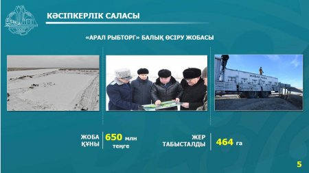 Атап айтар болсам, жеке кәсіпкер О. Медеубаеваның 600 млн. теңгенің сауда үйі, жеке кәсіпкер Е.Алданазаровтың 650 млн. теңгенің аквапарк пен қоғамдық тамақтану орны, жеке кәсіпкер А.Бақытбектің 500 млн. теңгенің қонақ үйі. Басықара ауылынан «Арал рыбторг» ЖШС 650 млн. теңгенің тауарлы балық өсіру тоғанының жобасы бойынша кәсіпкерлік 464 гектар жер учаскесі табысталып, тоғанның құрылысы жүргізілуде.