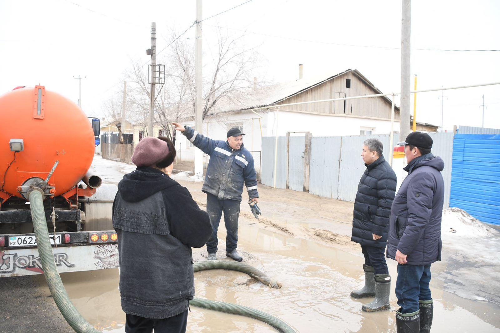 Бірнеше күннен бері Әйтеке би кентінің бірқатар аумақтарын еріген қар мен жаңбыр суынан тазарту жұмыстары үздіксіз жүргізілуде. Кент тазалығына жауапты мекемелердің 40-қа жуық қызметкерлері мен 10-нан астам арнайы су сорғыш техникалар күндізгі, түнгі аусымда да жұмыс жасауда. Қазіргі таңда аудандық мәслихат депутаттары мен ерікті азаматтарда жеке қаражаты есебінен су сорғыш техникаларын жалдап, елдік іске өз үлестерін қосуда.Бүгін аудан әкімі Алмасбек Есмаханов Әйтеке би кентінің әкімімен бірге кенттің 5 квартал аумағындағы көшелерді аралап, су тарту жұмыстарын көрді. Аудан басшысы кент әкімімен аталған аймақтың тазалығына жауапты мекеменің басшысына тұрғындардың қозғалысына кедергі жасайтын, жол бойындағы су жиналатын жерлерді шұғыл түрде тазарту және суларды сору жұмыстарын ұйымдастыруды тапсырды. Қажет болған жағдайда қосымша техника мен күш жұмылдыру арқылы қар мен жаңбыр суларын уақытылы тазалау міндеті жүктелді.