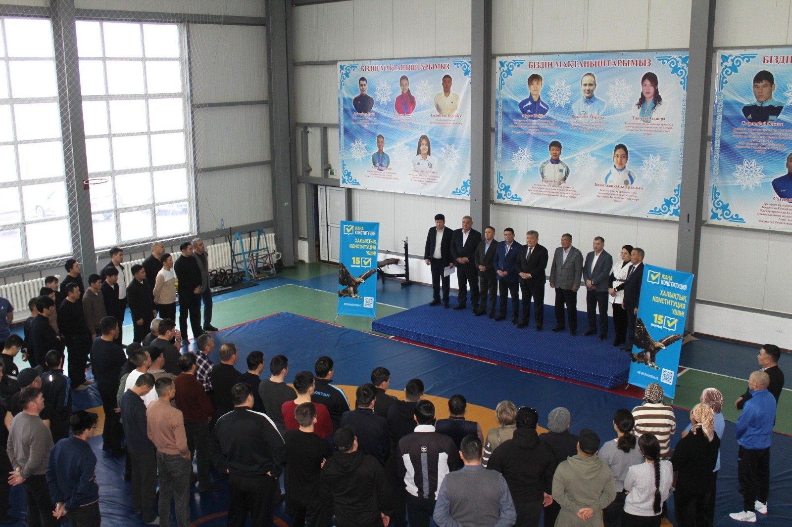 Бүгін «Әділетті және Прогрессивті Қазақстанның Халықтық Конституциясы үшін!» аумақтық коалициясы аудан спортшыларымен жаңа Конституция жобасын талқылауға арналған кездесу өткізді. Жиында Ата Заң жобасының негізгі қағидаттары, азаматтардың құқықтары мен бостандықтары, билік тармақтарының теңдігі және қоғамдағы әділдік пен тұрақтылық мәселелері қаралды.Іс-шараға спорт саласының 70-ке жуық өкілі қатысты. Кездесу барысында аумақтық коалиция жетекшісі Ғазиз Әліш 15 наурыз күні өтетін референдумның ел болашағы үшін айрықша маңызға ие екенін атап өтті. Сонымен қатар ол жаңа Конституция жобасының басты артықшылықтарына тоқталды.