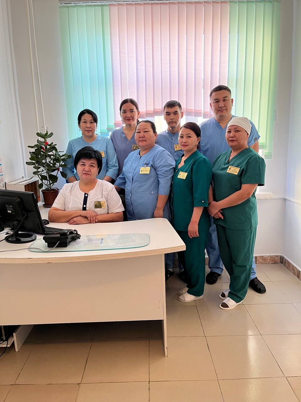 Бөлімшенің жауапты мейіргері – бірінші санатты Аманкүл Абжанова. Ол «Қазақстанның құрметті медбикесі» медалімен марапатталған тәжірибелі маман. Сонымен бірге физиотерапия бойынша бірінші санатты мейіргер Гүлнар Жақсылыққызы, емдік дене шынықтыру бойынша бірінші санатты мейіргер Алмаш Тастемірқызы, физиотерапия мейіргері Эльвира Маратқызы бөлім жұмысының сапалы атқарылуына үлес қосуда.