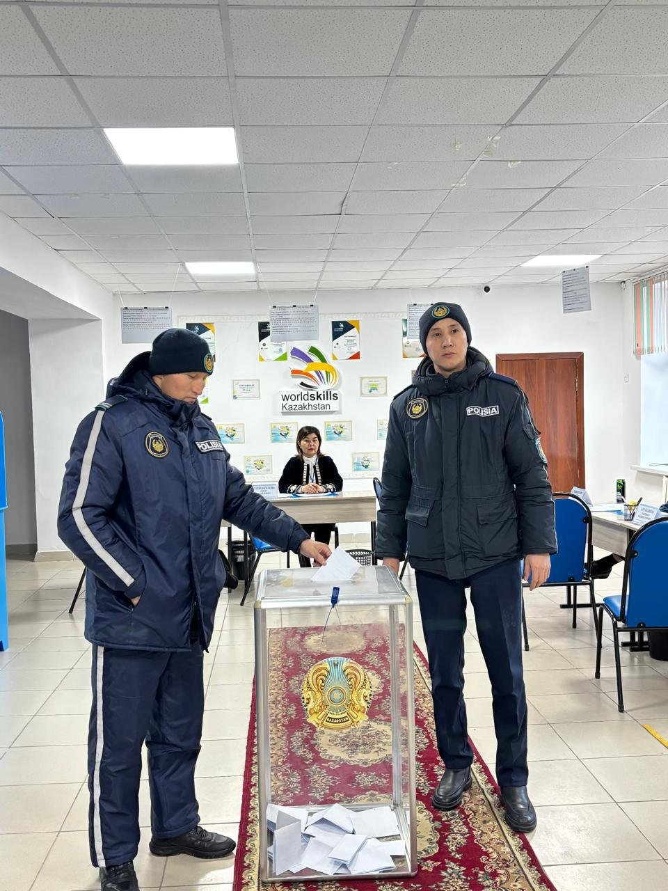 Сонымен қатар, құқық қорғау органдарының қызметкерлері референдум кезінде қоғамдық тәртіптің сақталуына да үлес қосып, сайлау учаскелеріндегі қауіпсіздікті қамтамасыз ету бағытында қызмет атқаруда. Осылайша олар бір жағынан азаматтық міндетін орындаса, екінші жағынан елдегі маңызды саяси шараның заң талаптарына сай әрі тыныш жағдайда өтуіне атсалысып келеді.