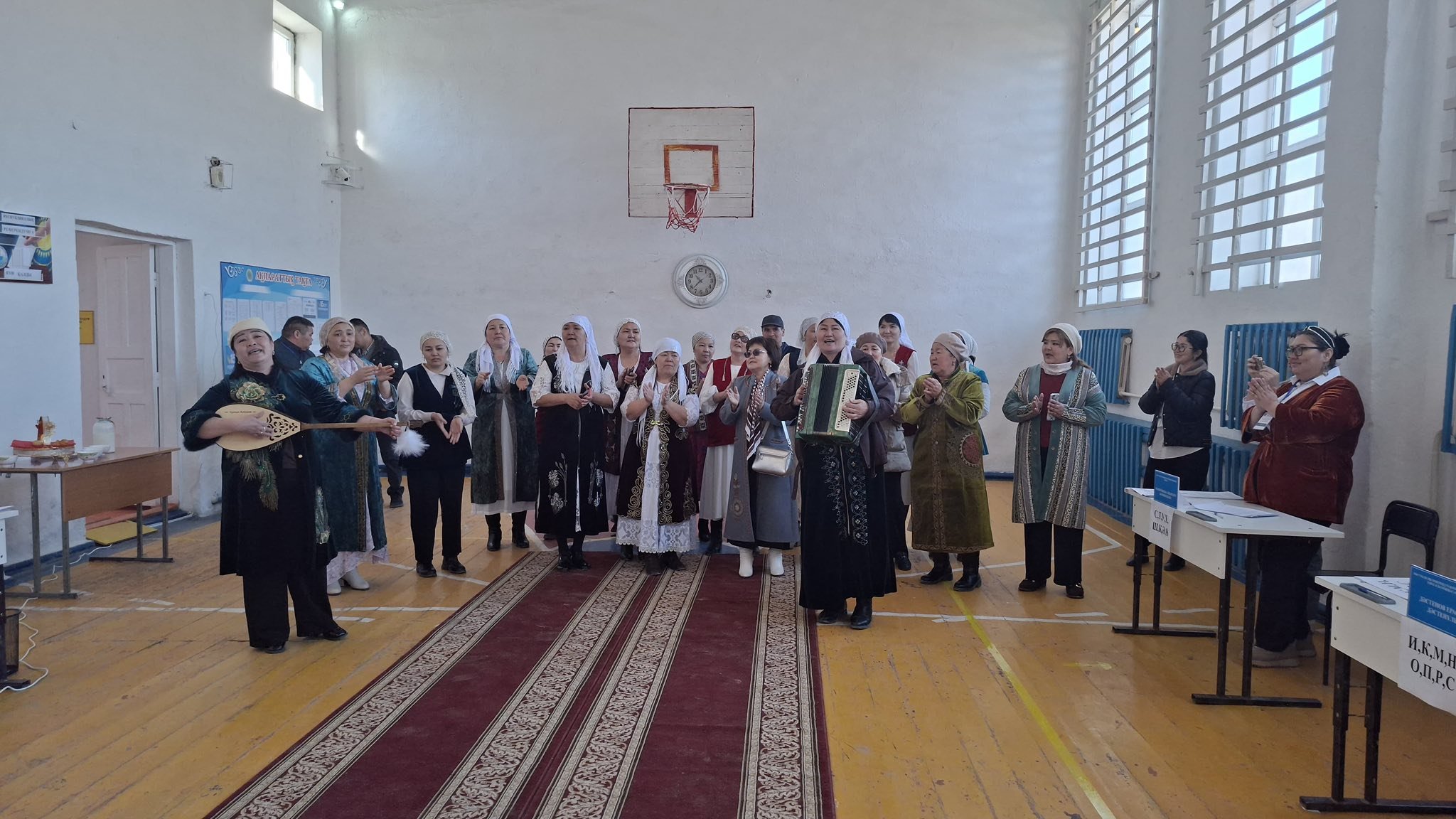 Бұл күні ауылдағы дауыс беру учаскесінде мерекелік көңіл-күй қалыптасып, тұрғындар ұйымшылдық пен ынтымақтың жарқын үлгісін көрсетуде.