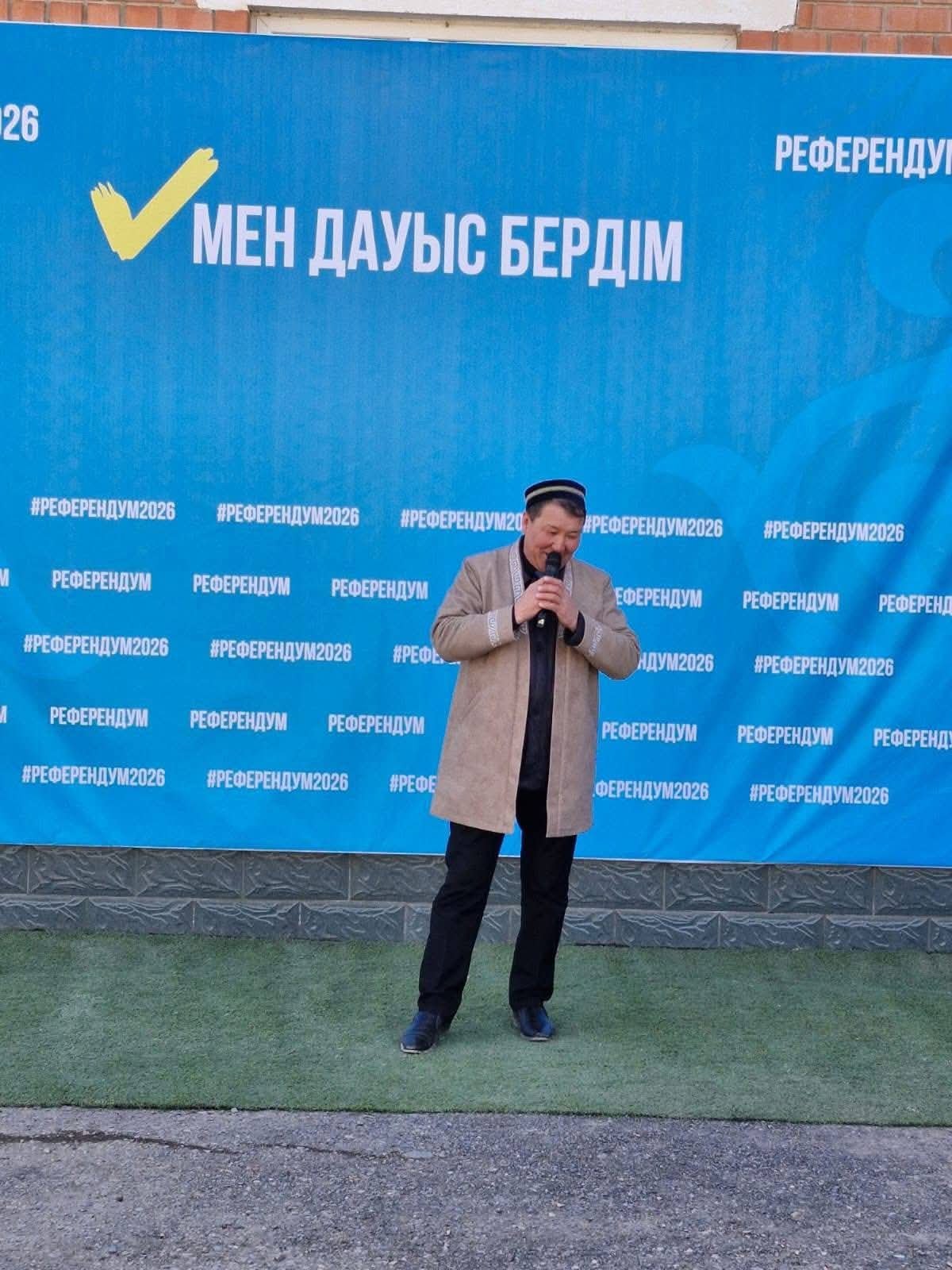 Өнерпаздар патриоттық әндер орындап, ұлттық өнерімізді дәріптеп, референдумға келген тұрғындардың мерекелік көңіл күйін арттыруда.