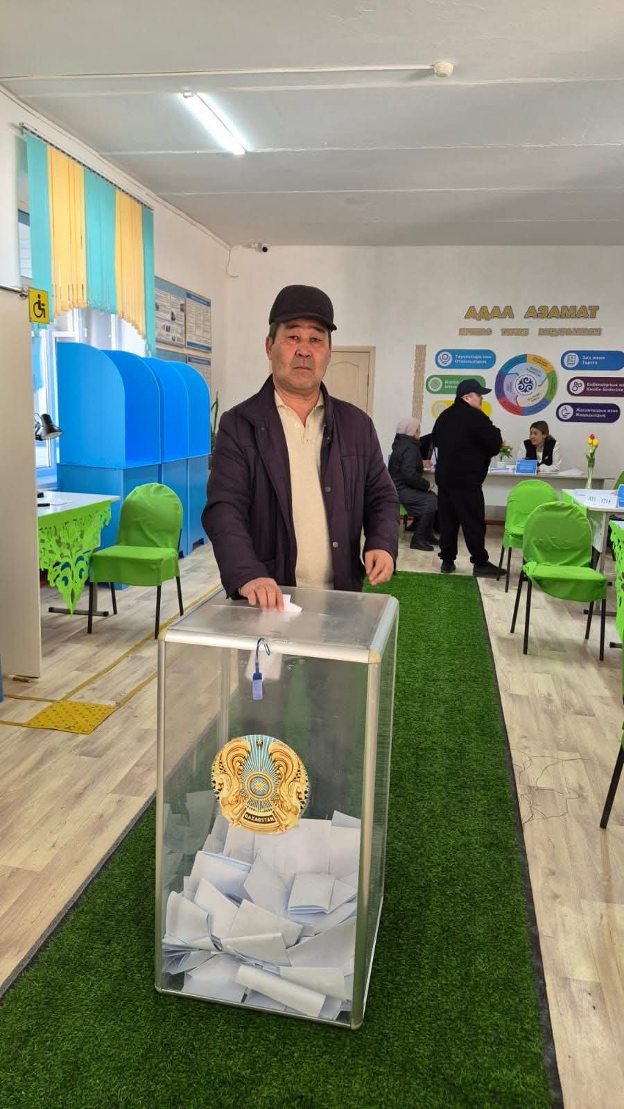 Алдоңғар Құлмағанбетовтың келуі учаскедегі комиссия мүшелері мен бақылаушылар үшін күтпеген, бірақ жағымды жаңалық болды. 1000-шы дауыс берушінің тіркелуі халықтың референдумға деген зор сенімі мен ел болашағына деген жауапкершілігінің нақты айғағы.